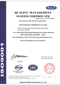 WUXI SUNWAY MACHINERY CO.,LTD is a professional manufacturer and exporter that are concerned with the design, development and production of cold roll forming machines. Our company is specialized in manufacturing different kinds of cold roll forming machines, such as color steel sheet forming machines for roof & wall, etc.